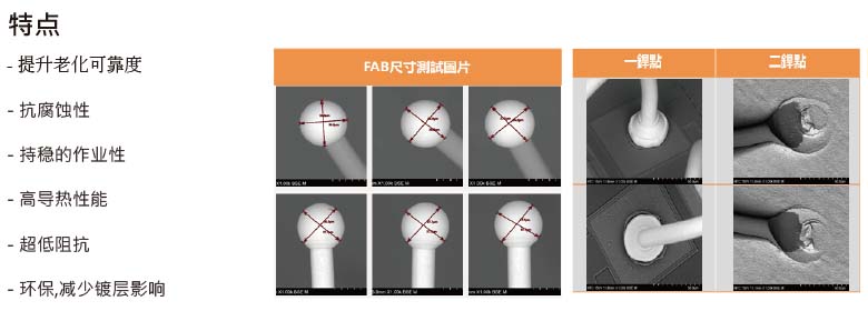 铜合金线:以铜-钯等多种金属元素组合精炼合金线- - 钯等合金元素在打线与信赖性制程能均匀扩散